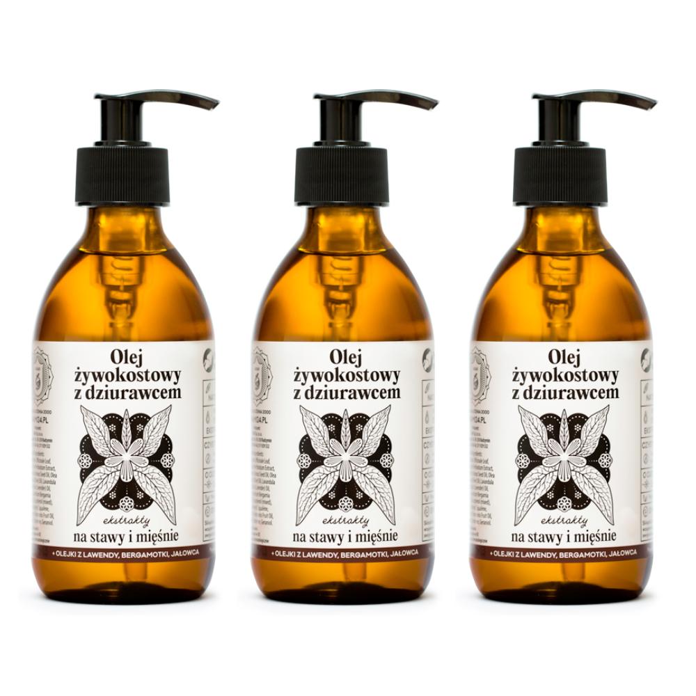 -10% PROMO/ 3 x Olej żywokostowy z dziurawcem, 6 aktywnych składników. Na stawy i mięśnie. 250ml