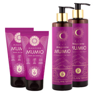 2 x Żel Magiczne Mumio do mycia twarzy i ciała Delikatny żel do skóry wrażliwej i suchej ze skłonnością do alergii. Zawiera witaminy z grupy A, biopierwiastki oraz kompozycję minerałów, aminokwasów i kwasów humusowych niezbędnych dla prawidłowej kondycji skóry. |