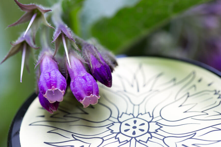 Żywokost lekarski - działa przeciwzapalnie i przeciwbólowo na układ kostno-stawowy oraz mięśniowy. Pomaga przy zwichnięciach i stłuczeniach.